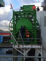 Hose & Reel Products BV is a European company who can deliver a complete custom made solution for providing a constant supply of sea-water on board for all kinds of vessels. Jack-up vessels are a basis for maintenance and installation of wind parks and oil or gas fields. The ship needs a constant flow of seawater to cool it’s engines but when the ship is lifting this can be a problem, because the height of the ship is constantly changing. We designed the perfect solution for this matter by making any kind of sea-worthy reel system, custom made to the clients wishes.